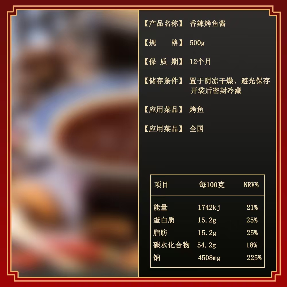 香辣烤鱼酱(规格:500g*50袋/桶)