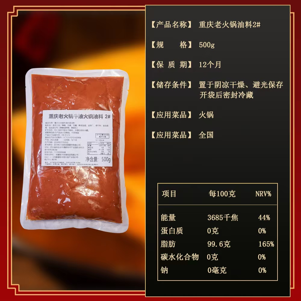 重庆原味老火锅2#油料(规格:500g*40袋/件)