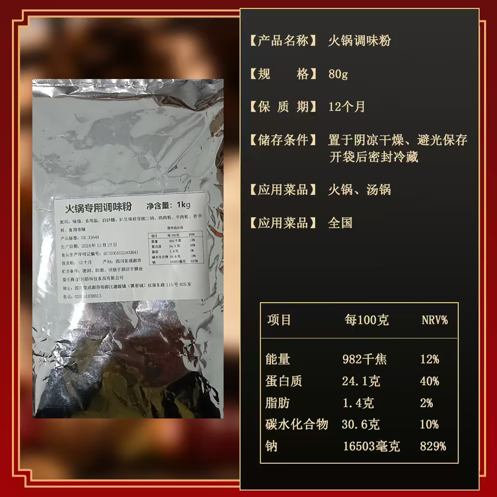 火锅专用调味粉(规格:1kg*12袋/件)