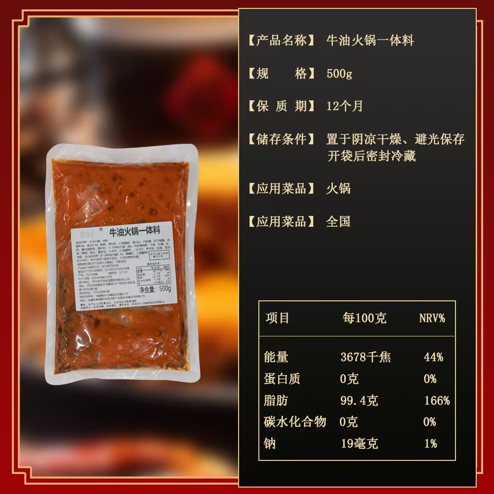 醇香牛油火锅底料(一体料)(规格:500g*1袋)
